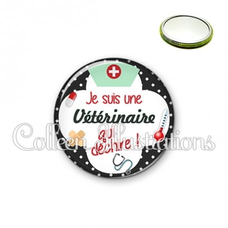 Miroir simple avec dos métallique décoré d'une image fantaisie et texte.