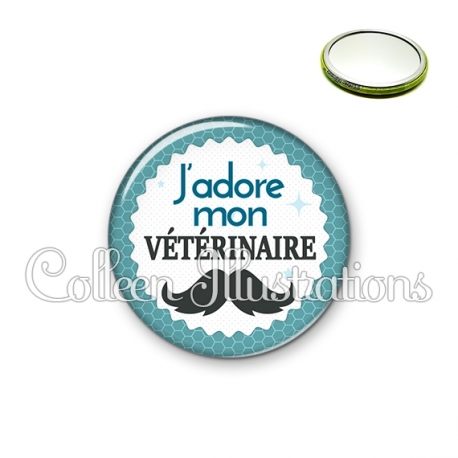 Image imprimée en haute résolution sur papier de qualité, protégée d'un film plastique, et sertie sur une coque métallique avec dos miroir. Une seule face, non grossissante.